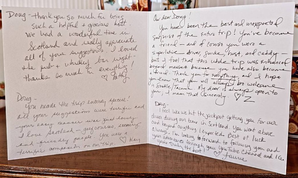 “Fantastic trip Douglas, great job, we will miss you!” Todd M
