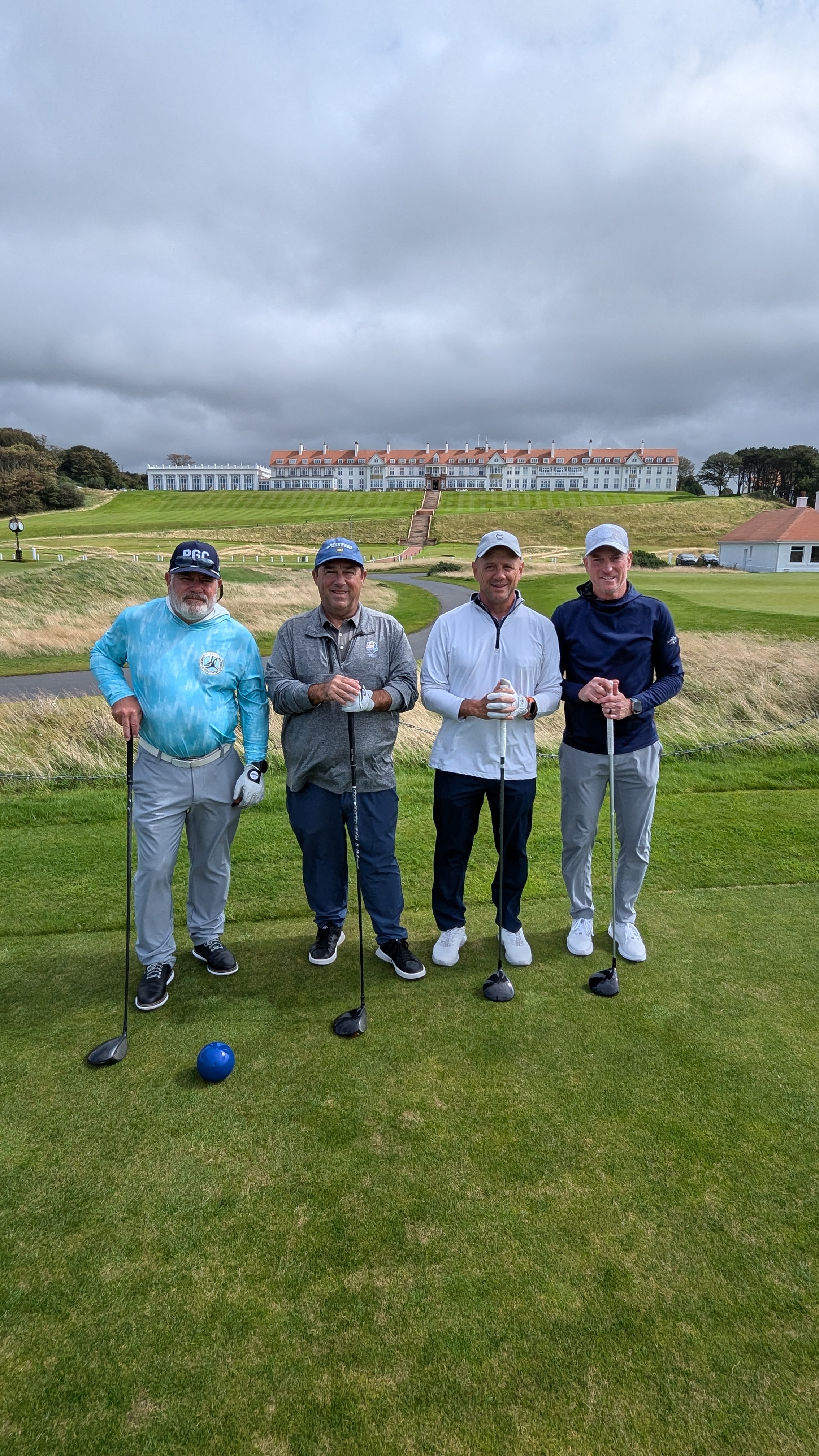 After picking my crew of 8 up from Edinburgh Airport we drove over to Prestwick in a monsoon and the guys touched it out for 14 holes in what their caddies described as the worse weather they’d ever caddied in. The group stayed at Dundonald lodges and the next day were blessed with much better weather for their games at Royal Troon & Western Gailes. That evening I took them for a fantastic dinner at Scotts in Troon. Next up was a game at Turnberry followed by dinner at Lido in Troon and then drinks at The Fox pub.